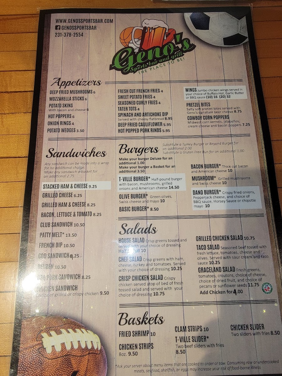 Welcome to Geno's Sports Bar And Grill, the hidden gem located at 14848 Thompson Ave, Thompsonville, MI. Their menu reflects a delightful blend of hearty comfort food and local favorites that cater to all appetites.